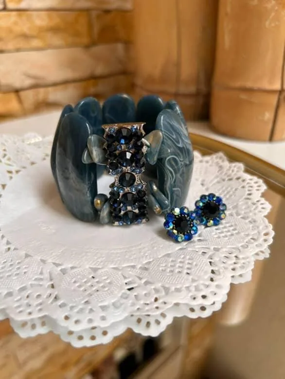 Um conjunto bracelete e brincos com detalhes e feito artesanalmente são peças únicas e encantadoras.