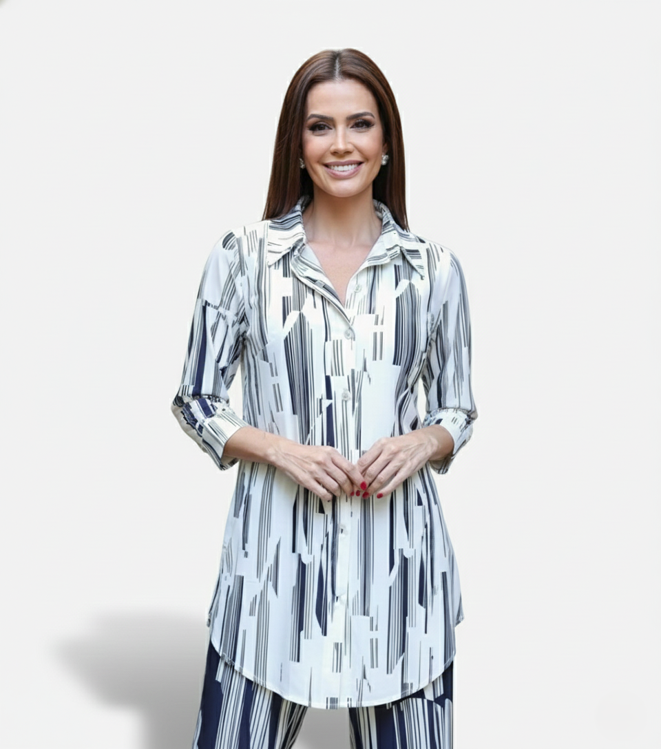 Eleve seu estilo com a sofisticação e o conforto incomparável da nossa Camisa Longa Iris Premium, peça essencial para o guarda-roupa da mulher moderna que não abre mão da elegância e da praticidade. Perfeita para um look executivo refinado ou um passeio casual chic.
