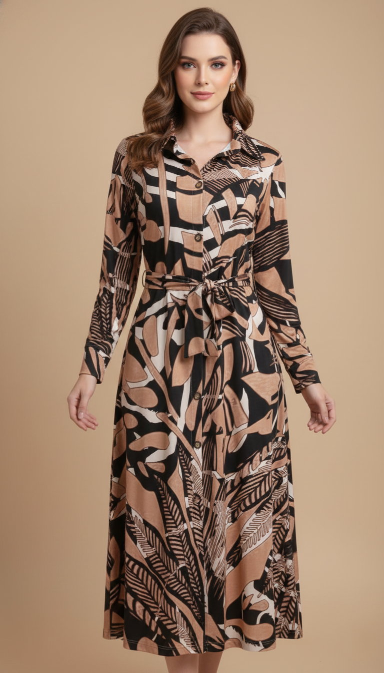 Harmonia Visual: A combinação desses tons cria um efeito visual moderno e sofisticado, fazendo desta uma peça de destaque no seu guarda-roupa, ideal para quem procura uma chemise tons terrosos.