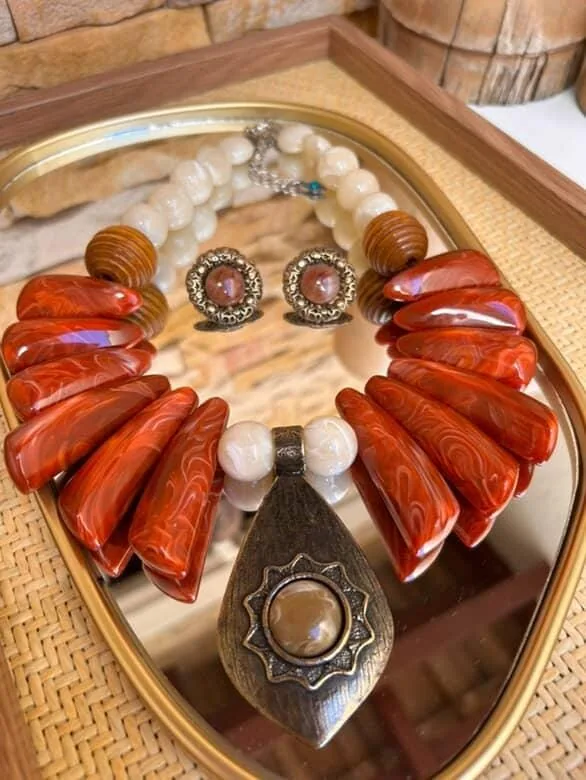 Um colar com detalhes e feito artesanalmente uma peça única e encantadora..