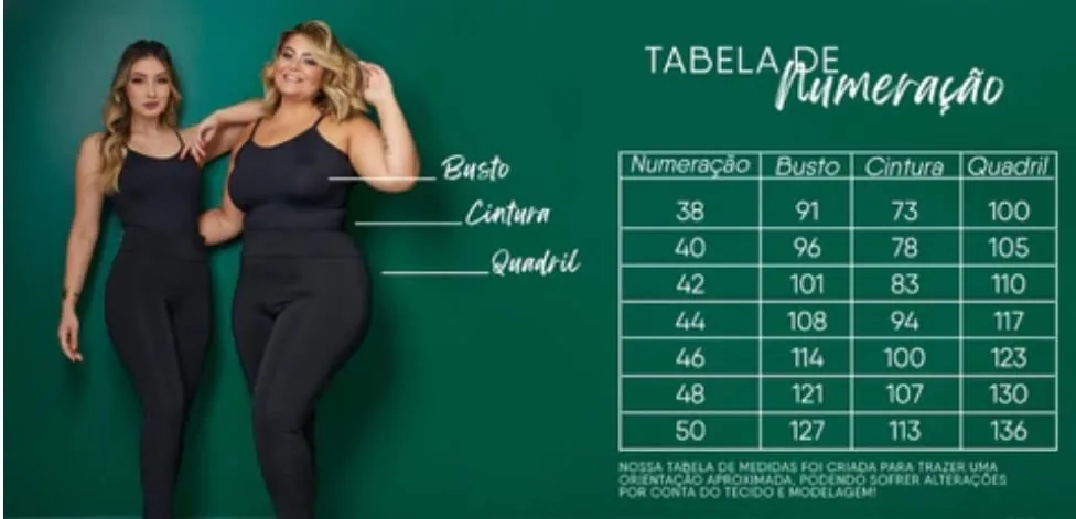 Tabela de medidas: