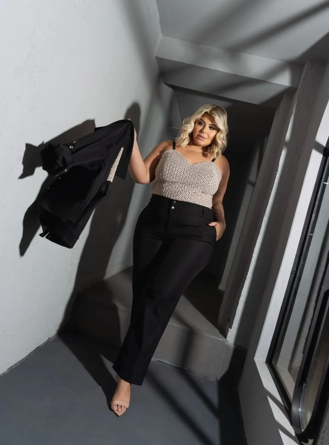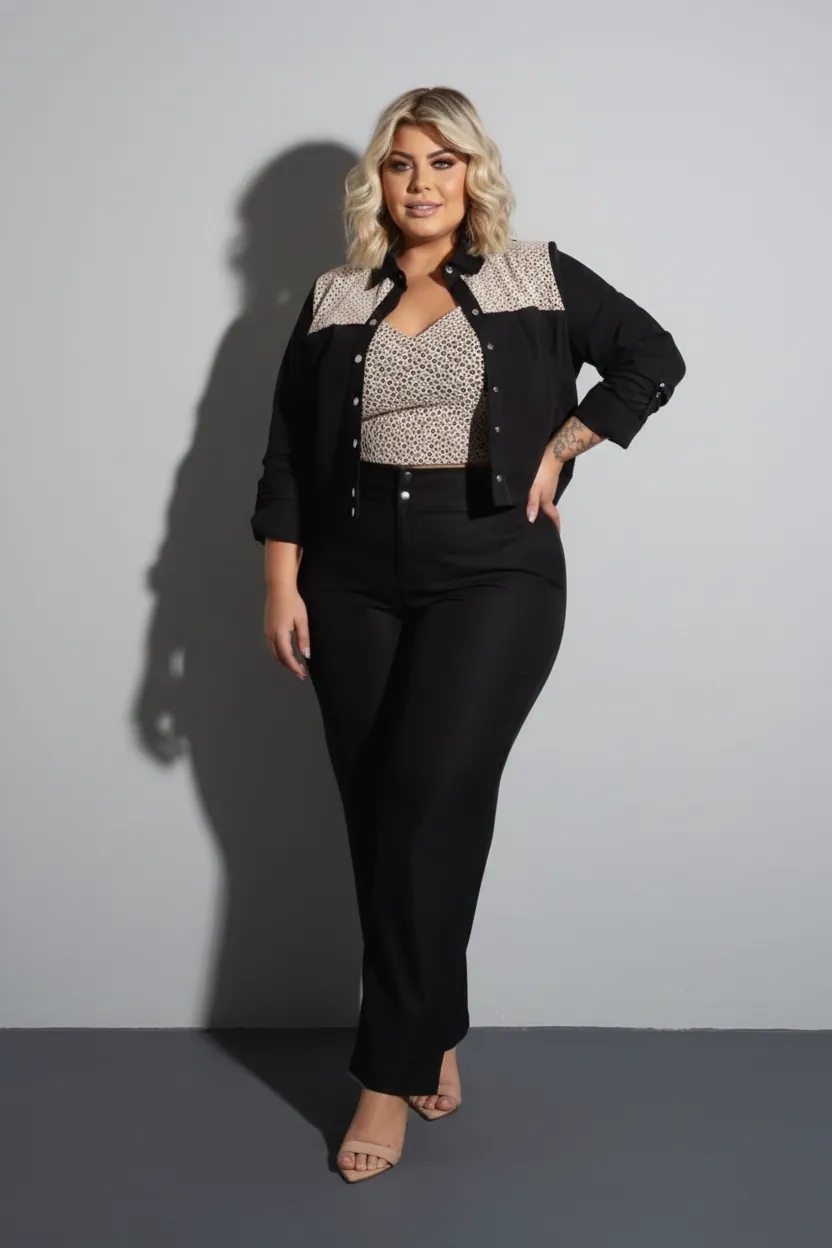 Conjunto Feminino Plus Size Cynthia Casaco Estruturado e Cropped
