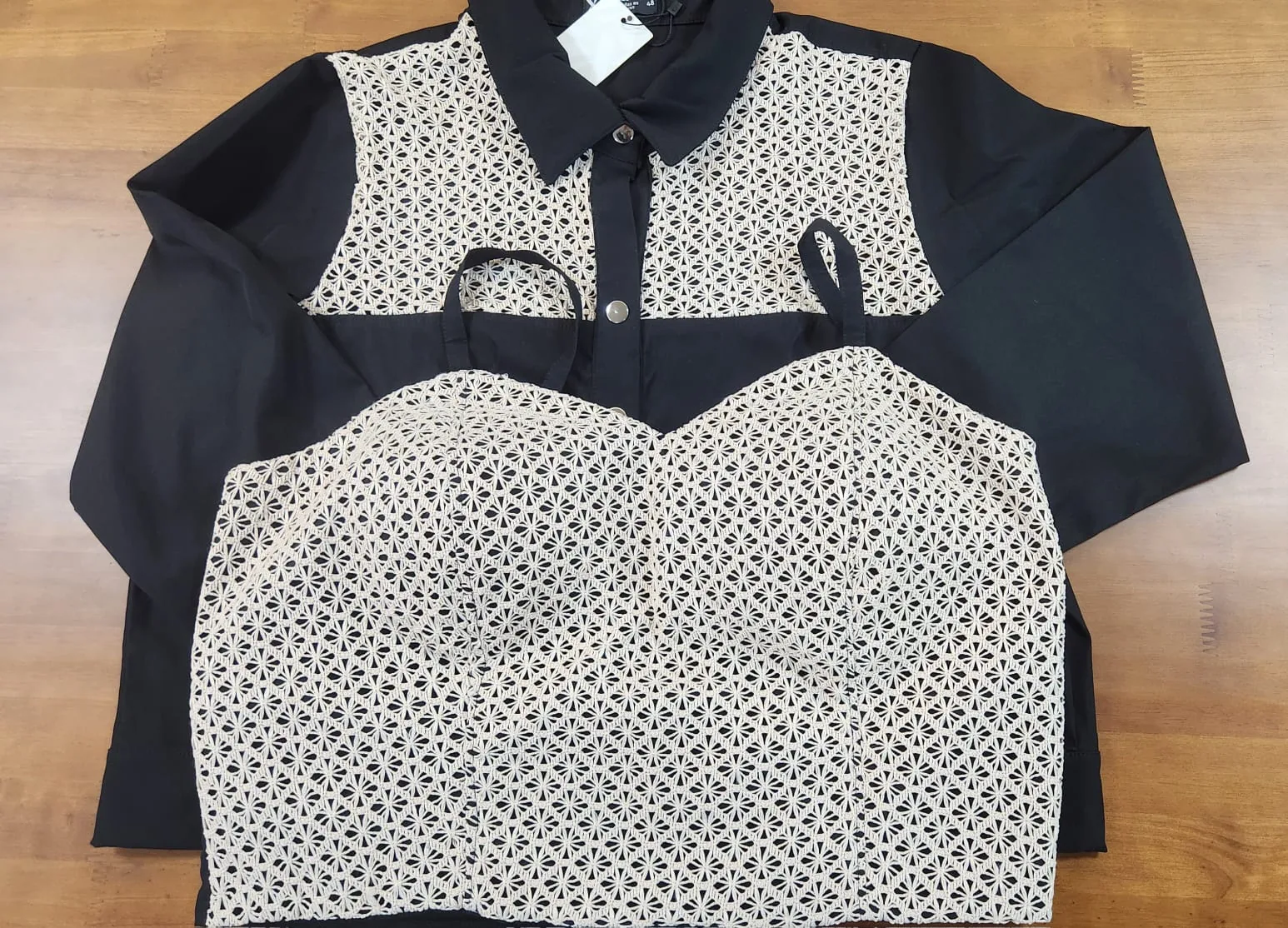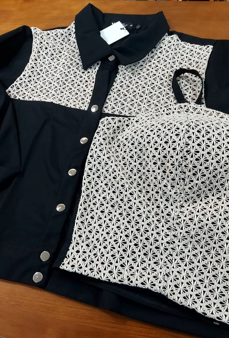 • Design Integrado: O casaco apresenta aplicações frontais do mesmo tecido rendado do cropped, criando um visual coordenado e exclusivo.