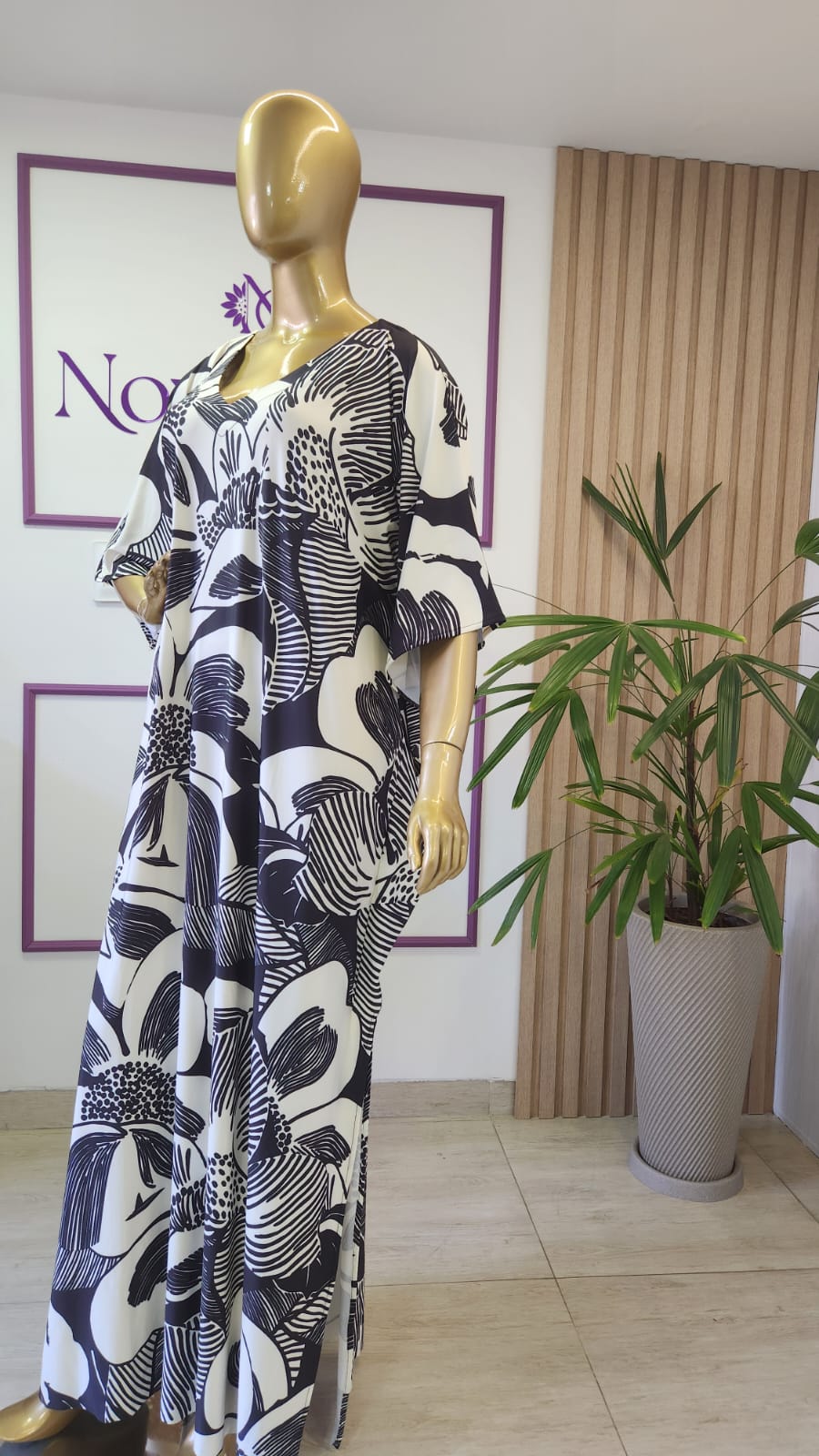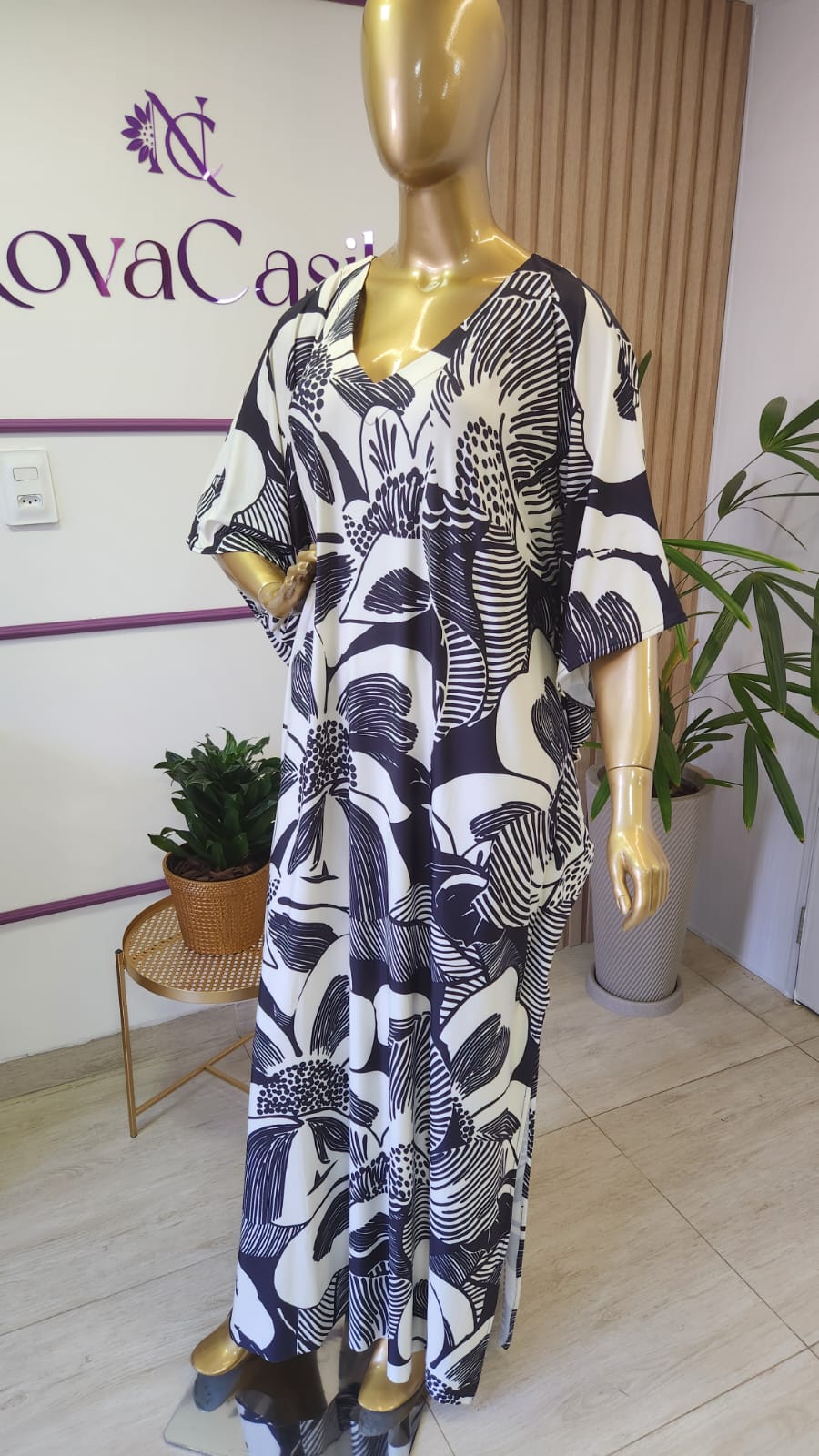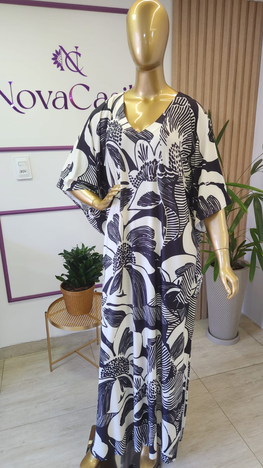 O kaftan longo Clarice com manga raglan é uma peça sofisticada e versátil, perfeita para quem busca conforto aliado à elegância.