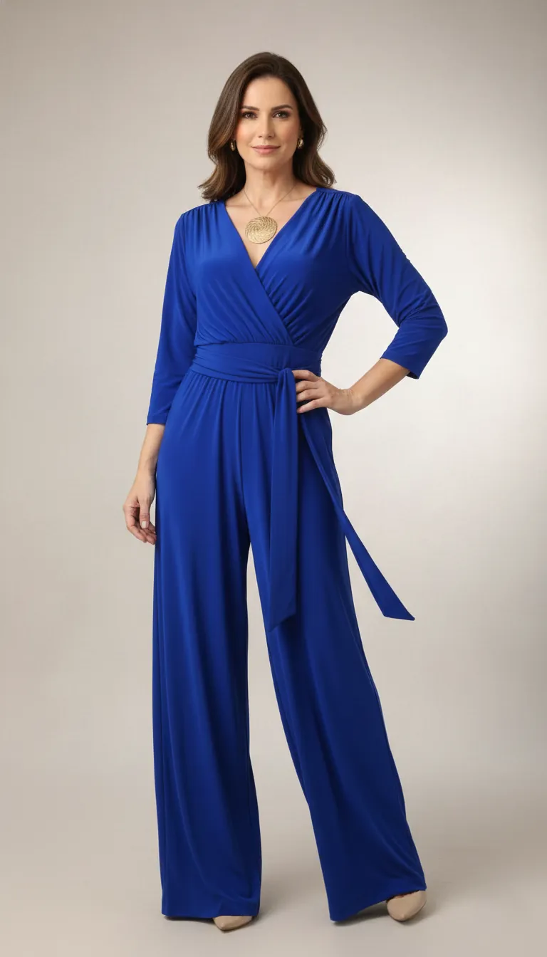 elegante e confiante com o nosso Macacão Longo Elyanne. Esta peça única é a definição de praticidade aliada ao glamour, desenhada para a mulher que busca um visual impactante sem abrir mão do conforto. O tom de Azul Royal vibrante é um clássico que ilumina qualquer ocasião!