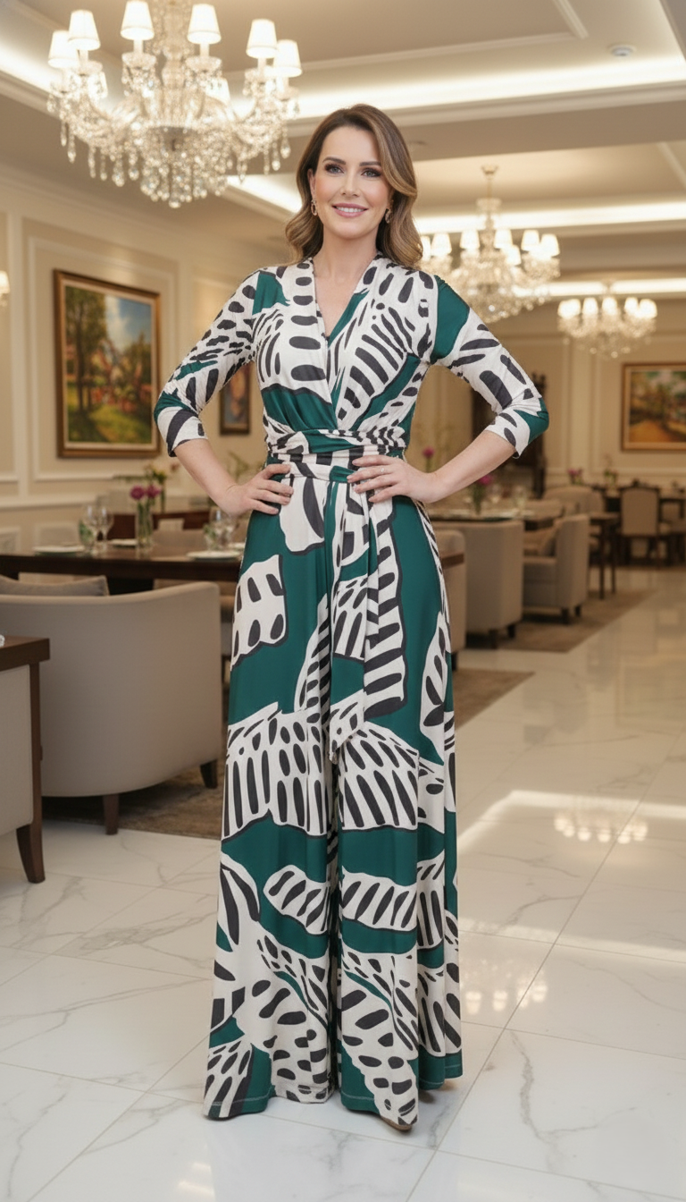 Este macacão é uma peça extremamente sofisticada e lisonjeira, unindo a versatilidade da modelagem envelope (wrap) com o conforto e o caimento impecável da Malha Fluity Premium. É um item essencial para quem busca elegância pronta para usar.