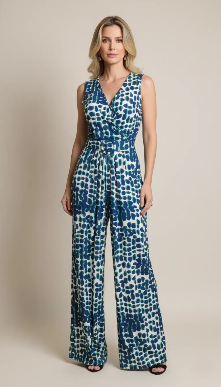 Dê as boas-vindas à praticidade e ao estilo com o Macacão Longo Isolde. Esta peça é a solução perfeita para quem busca um visual completo, sofisticado e pronto em um instante. A estampa exclusiva em tons de verde e azul marinho com fundo claro adiciona um toque artístico e moderno ao seu guarda-roupa.