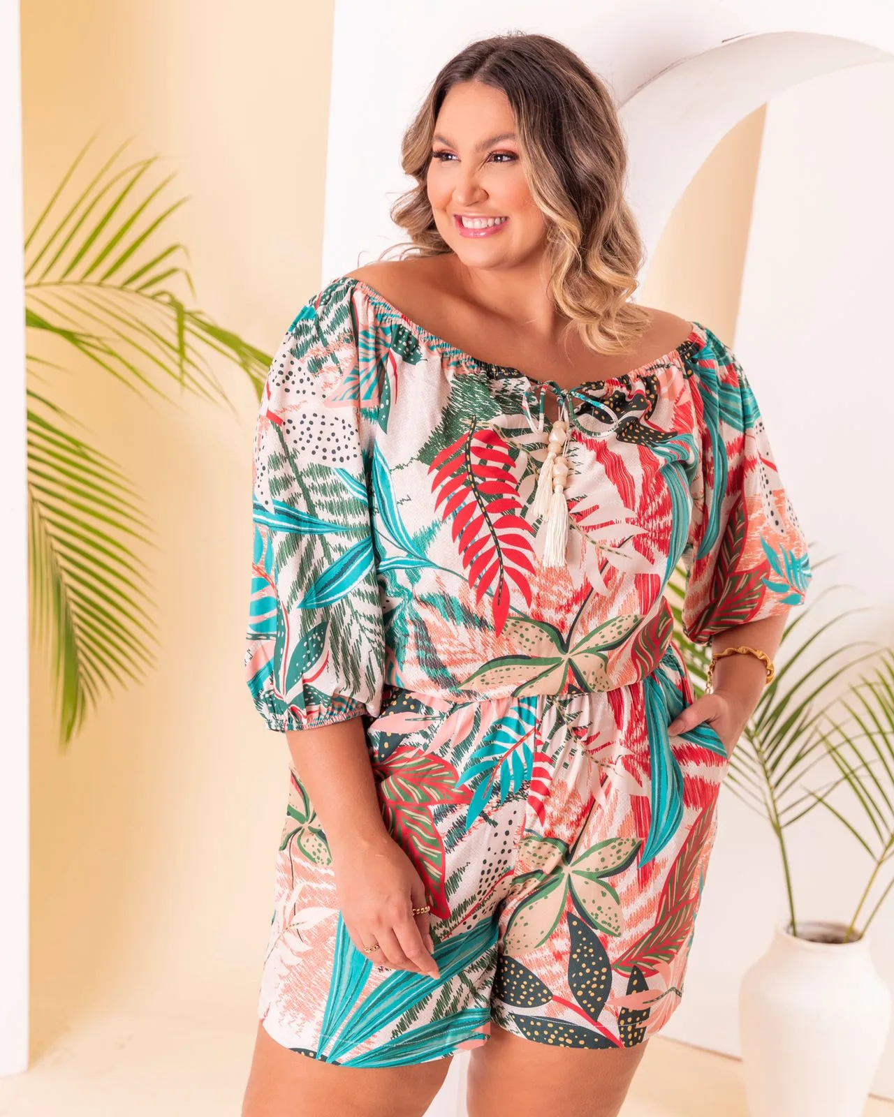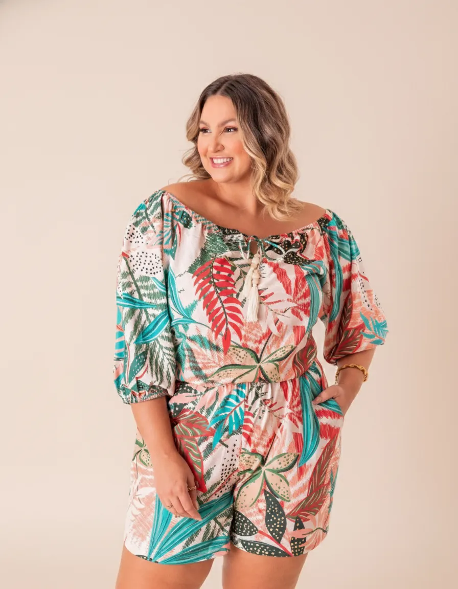 Este macaquinho é a definição de Moda Resort Premium. Diferente de peças sintéticas comuns, o crepe de seda oferece uma durabilidade superior e uma aparência de boutique luxuosa. Ideal para cruzeiros, almoços em resorts, eventos diurnos ou passeios à beira-mar onde a elegância é regra.