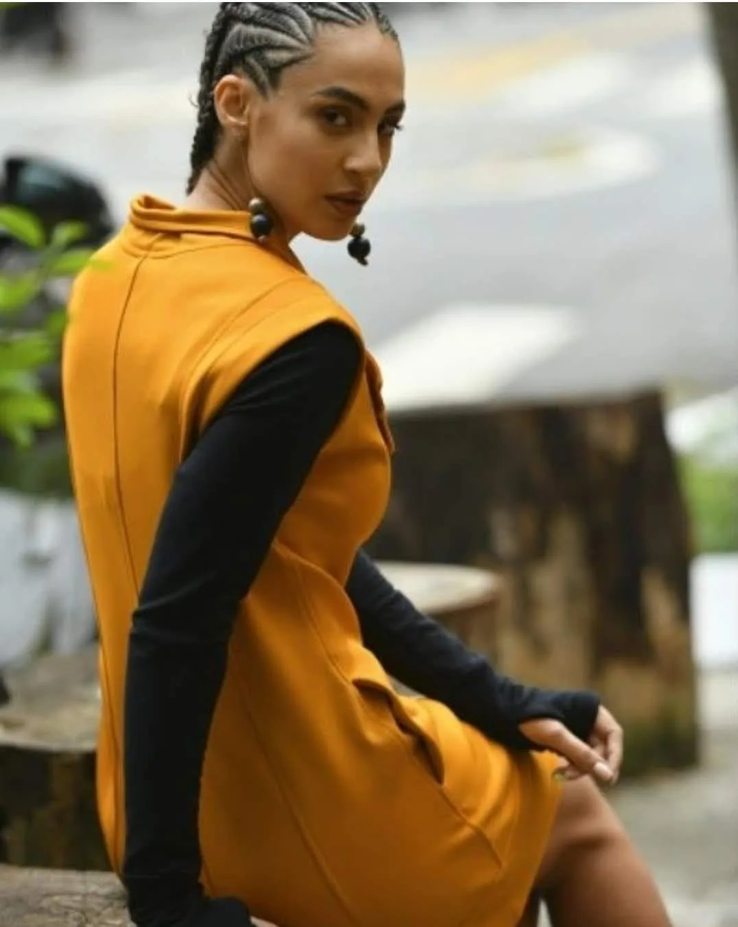 Look Casual Chic: Combine com botas de cano curto e uma blusa de gola alta (turtleneck) por baixo, como na foto, para um contraste de cores moderno.