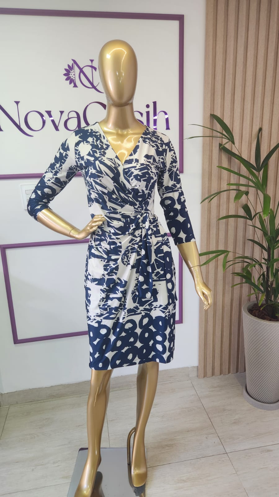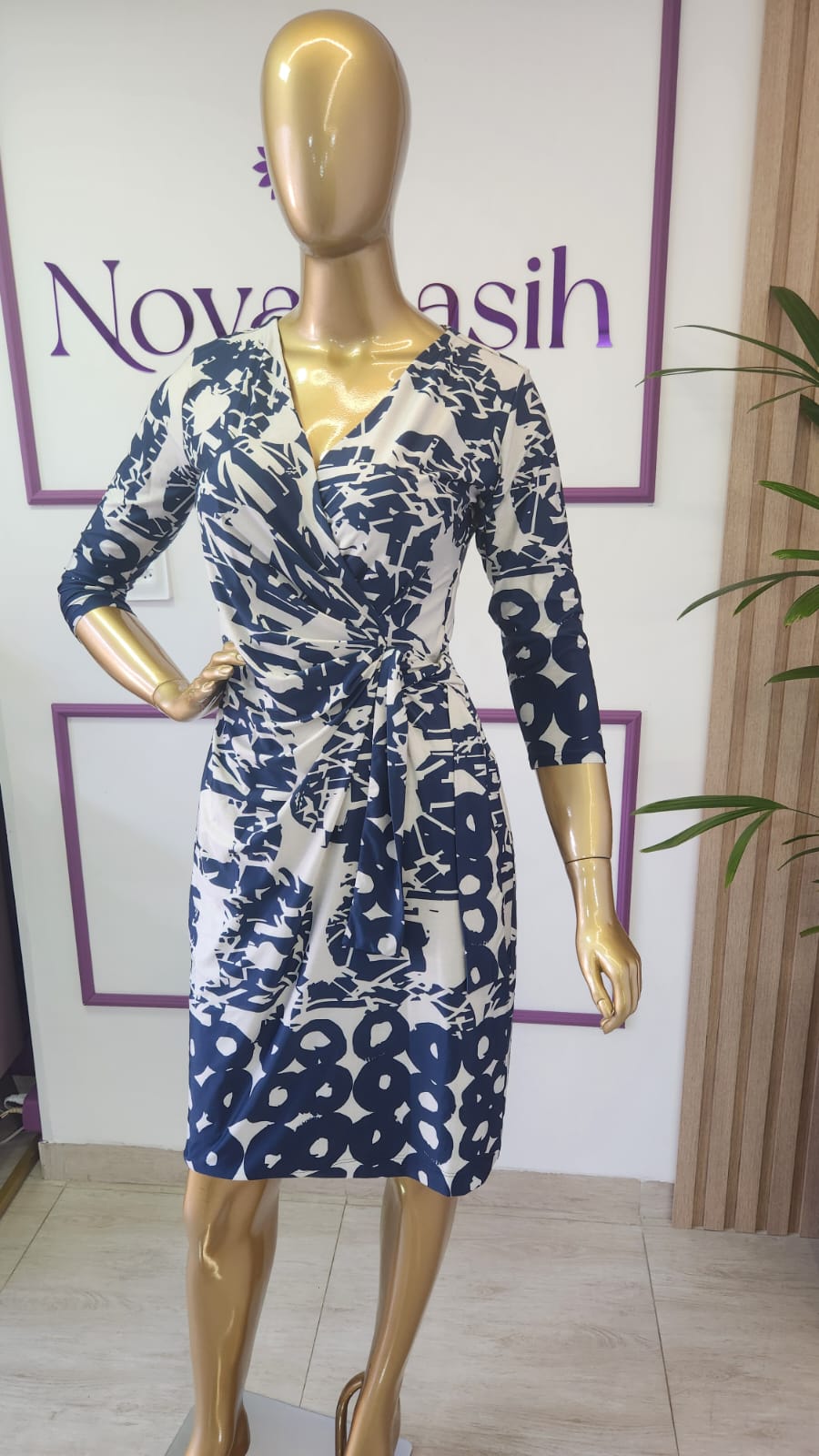 Estampa Exclusiva: A peça é realçada por uma estampa exclusiva em alto contraste (Azul Marinho/Índigo e Branco). O padrão abstrato e orgânico é vibrante, clássico e sofisticado, com um toque náutico moderno.