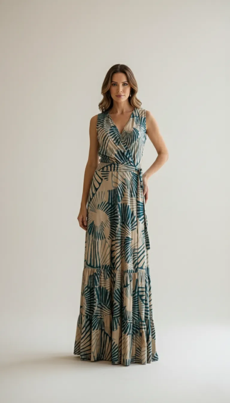 O vestido longo regata transpassado em malha premium foi criado para acompanhar mulheres que apreciam elegância natural, conforto absoluto e um caimento impecável.