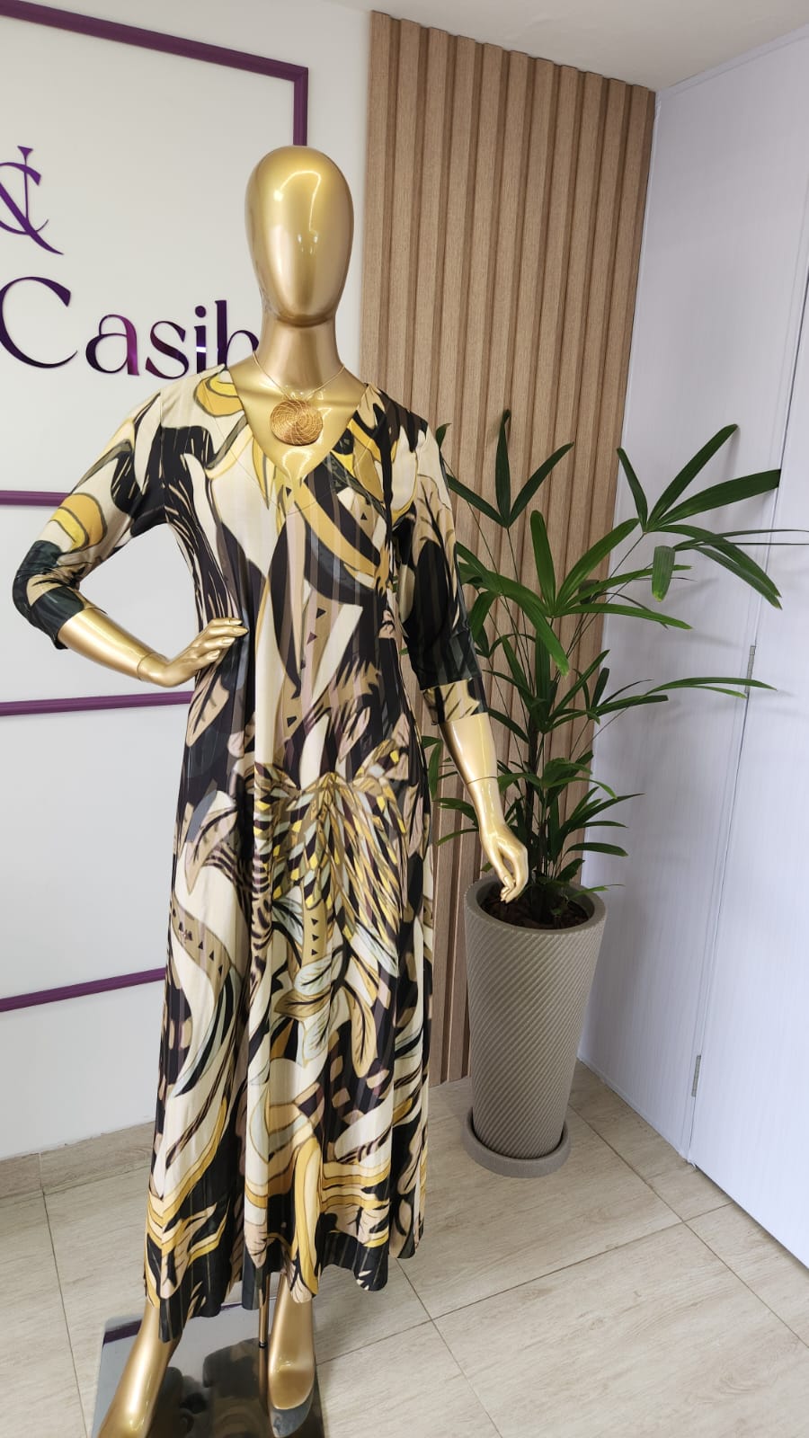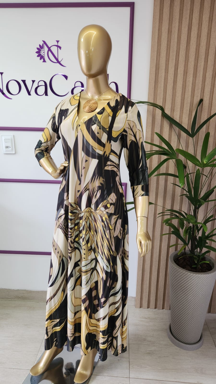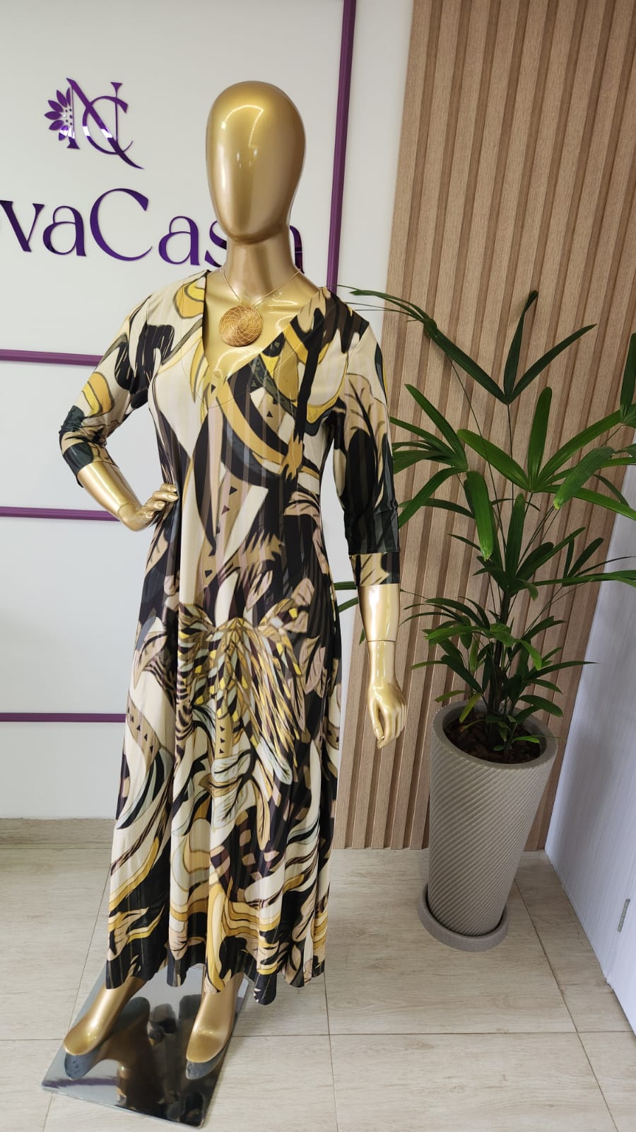 O comprimento longuete oferece presença elegante, permitindo combinações tanto com sandálias delicadas quanto com saltos mais estruturados. Cada detalhe da peça foi pensado para entregar refinamento e praticidade, resultando em um vestido que une estilo atemporal, exclusividade e conforto premium.