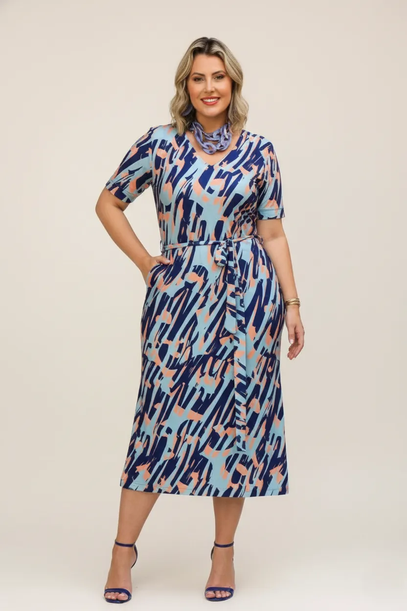 Vestido Midi Plus Size em Fluity Premium: Conforto com Toque Fashion